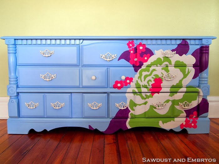 Για το χρώμα που θα επιλέξετε, συνδυάστε το με τα πολύχρωμα λουλούδια για τα κλινοσκεπάσματα του κρεβατιου. Ξύστε καλά την παλιά συρταριέρα ώστε να γίνει λεία. Περάστε την με το χρώμα που έχετε επιλέξει.