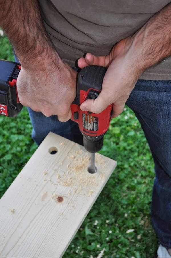 Μετράμε και ανοίγουμε τρύπες με το ειδικό εργαλείο “τρυπάνι με φτυαράκι” όπως φαίνεται στην εικόνα, μία σε κάθε γωνία.
