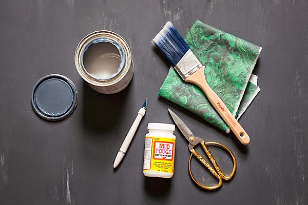 Καλύπτουμε όλη την επιφάνεια με ένα λεπτό στρώμα κόλλας και τοποθετούμε το ύφασμα πάνω σπρώχνωντας έξω όλες τις φυσαλλίδες αέρα προσέχοντας να μην εγκλωβιστούν κάτω απο το ύφασμα.