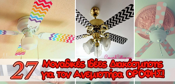 Πανέμορφες ιδέες για να διακοσμήσετε και να αλλάξετε εντελώς τους μονότονους ανεμιστήρες οροφής. Υπάρχουν διάφορες τεχνικές. Είτε με πολύχρωμες ταινίες, είτε με ύφασμα ή απλά βάφοντας τους. Το μόνο σίγουρο είναι οτι θα σπάσει η μονοτονία και θα έχετε ένα μοναδικό ανεμιστήρα οροφής.