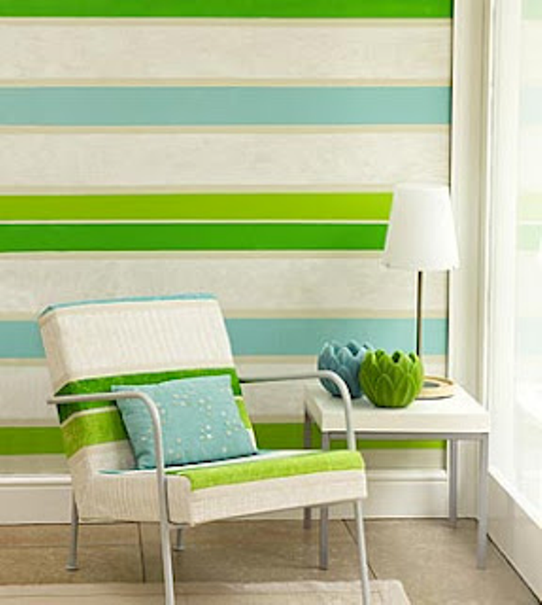 Συνδυάστε το μοτίβο με τις ρίγες που χρησιμοποιήσατε στον τοίχο σας με κάποιο απ’ τα υφάσματα του χώρου, με τα μαξιλάρια, τις κουρτίνες ή τα ριχτάρια για πιο αρμονικό αποτέλεσμα. Έχετε τη δυνατότητα να βάλετε ταπετσαρία με ρίγες ή να βάψετε μόνοι σας τον τοίχο. Ο δεύτερος τρόπος είναι πιο οικονομικός και αρκετά εύκολος για να το κάνετε μόνοι σας. Το μόνο που πρέπει να κάνετε είναι να μετρήσετε στον τοίχο το πάχος που θέλετε να έχουν οι ρίγες, και με τη βοήθεια χαρτοταινίας να βάψετε τα σημεία αυτά.