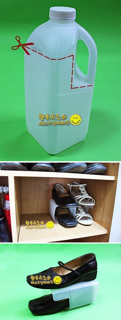 Μετατρέψτε ένα άδειo μεγάλο πλαστικό μπουκάλι σε βάση για παπούτσια. Μπορείτε να στοιβάξετε πολλές!