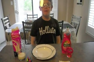 Ο μικρός επιστήμονας, με μερικές απλές κινήσεις έκανε τον στόχο του πραγματικότητα και εμείς είδαμε ένα μαγικό αποτέλεσμα σην οθόνη μας. Εξαρχής βάζεις λίγο γάλα στο πιάτο. Μετά προσθέτεις λίγο χρώμα από μερικές τέμπερες. Και τέλος με μια μπατονέτα παίρνεις σαπούνι και το τοποθετείς προς το κέντρο.