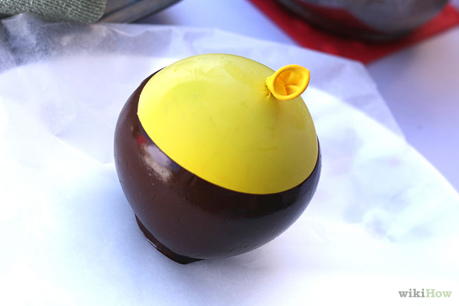 Αφού έχει γίνει σκληρή για τα καλά η σοκολάτα με μία καρφιτσούλα σπάμε τα μπαλόνια προσεκτικά για να μην εκραγούν και τα αφηνουμε να ξεφουσκώσουν μόνα τους.