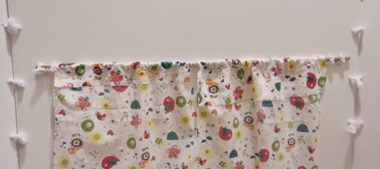 Κόψτε το ύφασμα που θέλετε για τις κουρτίνες σε δύο ίσα κομμάτια. Εάν διαθέτετε, καλύτερα χρησιμοποιήστε ένα ψαλίδι με ζιγκ ζαγκ για να μην ξεφτάει το ύφασμα. Περάστε τα κομμάτια γύρω από το ξύλο και κολλήστε με κόλλα σιλικόνης, ή ράψτε.