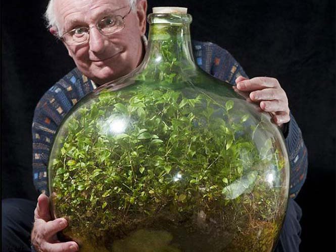 Ο 80χρονος David Latimer φύτεψε έναν «κήπο» σε ένα τεράστιο μπουκάλι 38 λίτρων το 1960, βάζοντας λίγο κομπόστ, 1/4 του ποτηριού νερό και ένα βλαστό Spiderwort, αφήνοντας το φως του ήλιου να κάνει τα υπόλοιπα. Το πότισε μόνο μια φορά το 1972 και από τότε το κρατάει σφραγισμένο.