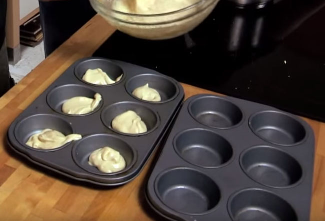 Ρίξτε το μείγμα σε ταψάκια για muffins. Περίπου τόσο όσο να καλύψει τον πάτο.