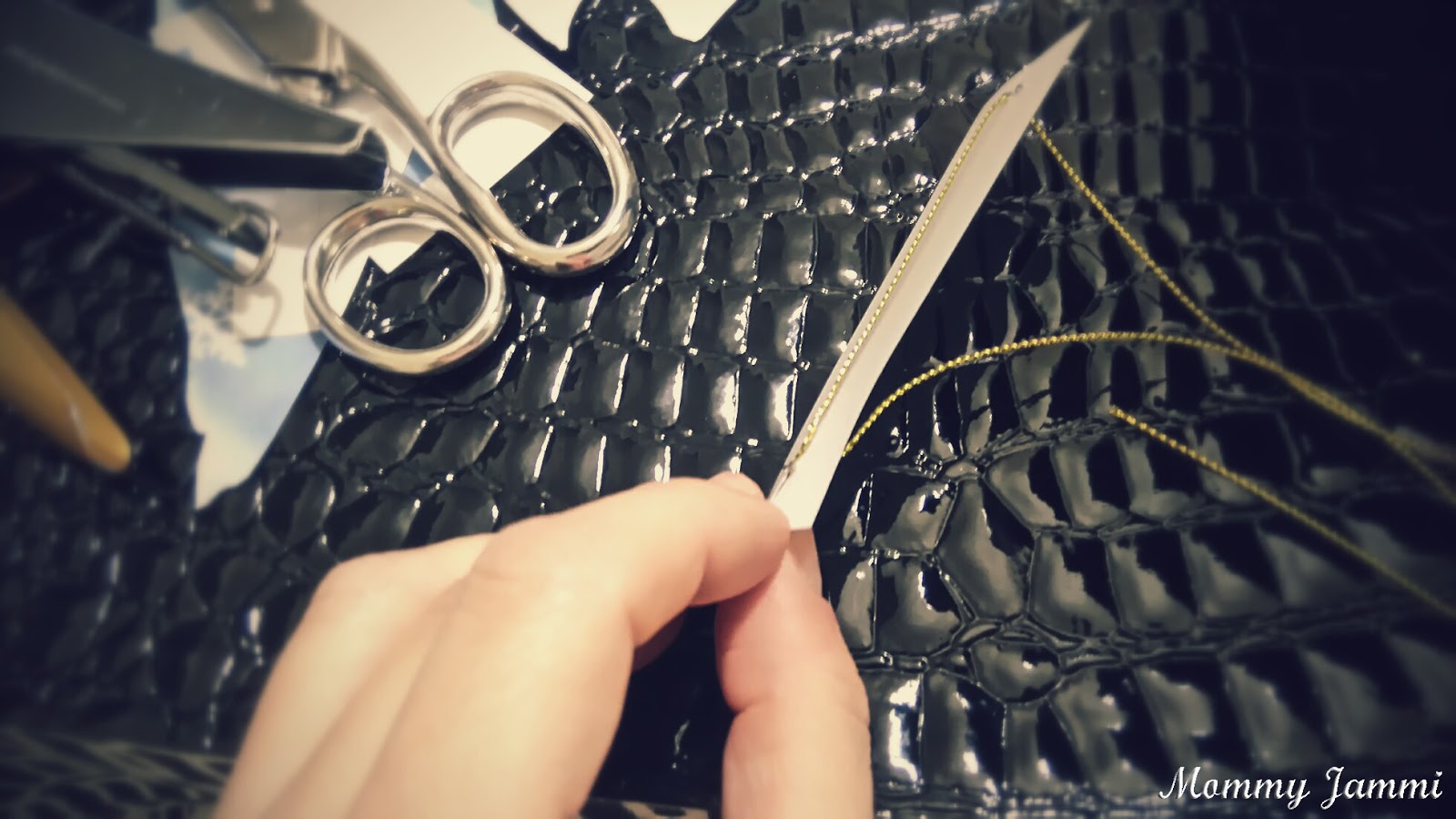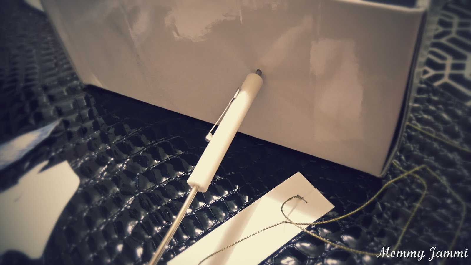 Στην συνέχεια έφτιαξα μία κούνια με λευκό σκληρό χαρτί και μία χρυσή κλωστή ανοίγοντας στα πλάγια λίγο με το ψαλίδι και στερεώνοντας από κάτω με λίγο σελοτέιπ.