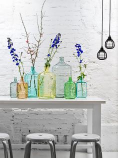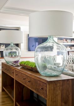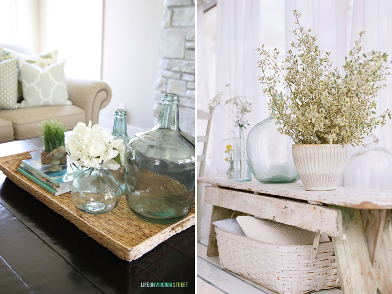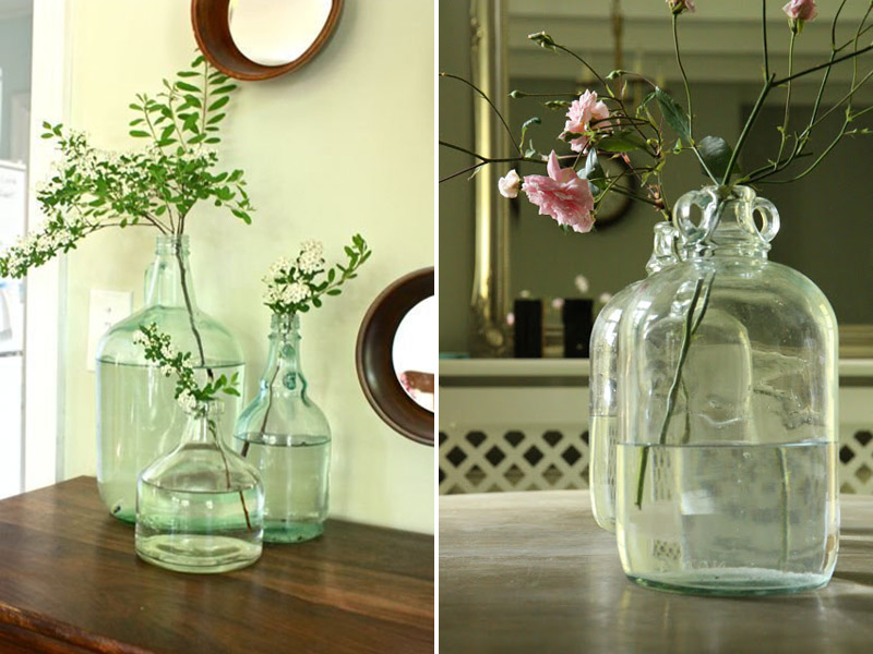 Οι μπουκάλες κρασιού γνωστές ως νταμιτζάνες, έχουν από καιρό τεθεί σε χρήση ως διακοσμητικά αντικείμενα. Ένας εύκολος τρόπος για να προσθέσετε χρώμα την άνοιξη σε ένα δωμάτιο, φαίνονται εξίσου καλά σε ένα σπίτι με καθαρές γραμμές ή ρουστίκ ατμόσφαιρα. Και πραγματικά τι να πρωτόλατρέψει κανείς στα υπερμεγέθη αυτά γυάλινα δοχεία; Με το πανέμορφο σχήμα τους, σίγουρα δεν χρειάζονται πολλά για να αναδειχθούν. Ως βάζα και ως φωτιστικά, κλέβουν τις εντυπώσεις. Τις βάζουμε παντού, μαζί με το ακριβό σαλόνι μας, στην τραπεζαρία μας, στην κουζίνα, σαν φωτιστικό για πιο προχωρημένους στην διακόσμηση, και γενικά παντού. Δείτε μερικές διακοσμητικές επιλογές και απολαύστε απίθανες ιδέες διακόσμησης με το μαγικό γυαλί της νταμιτζάνας.