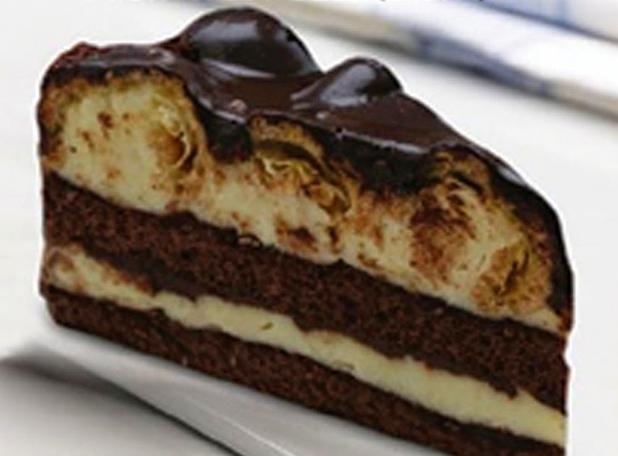 3. Απλώνουμε την κρέμα βανίλιας, (*πρώτη στρώση) και με ένα κουτάλι ραντίζουμε επάνω λίγο κρύο γλάσο σοκολάτας.