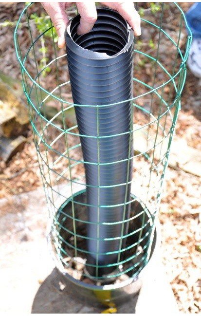 Επίσης, θα χρειαστείτε τις πέτρες για να σταθεροποιήσετε την σωλήνα μέσα στην γλάστρα. Στην συνέχεια, βγάλτε το καλώδιο περίφραξης και τυλίξτε το γύρω από την γλάστρα μέχρι την κορυφή. Θα πρέπει να μοιάζει όπως η παραπάνω εικόνα.