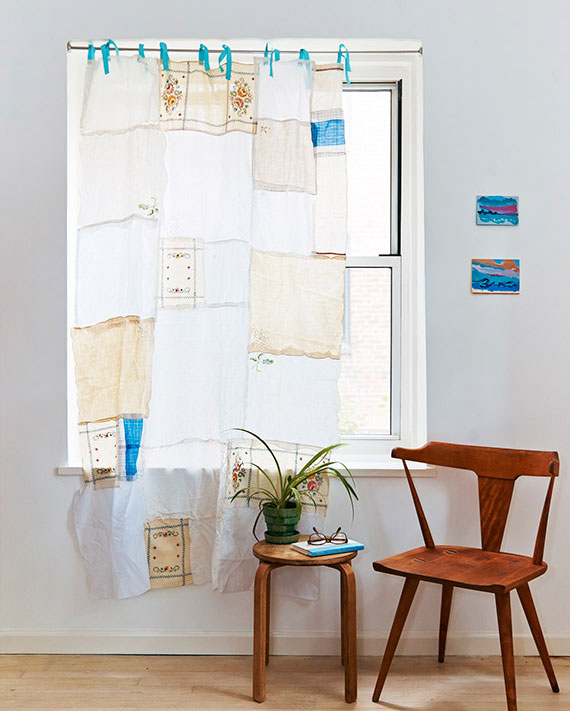 Συμβουλή: Αν δεν δημιουργηθεί ένα τέλειο ορθογώνιο, μπορεί να χρειαστεί να περικόψετε μερικά πετσετάκια από την περίμετρο της κουρτίνας. Αφήστε όμως αρκετό κομμάτι ώστε να στριφώσετε τα κομμένα άκρα.