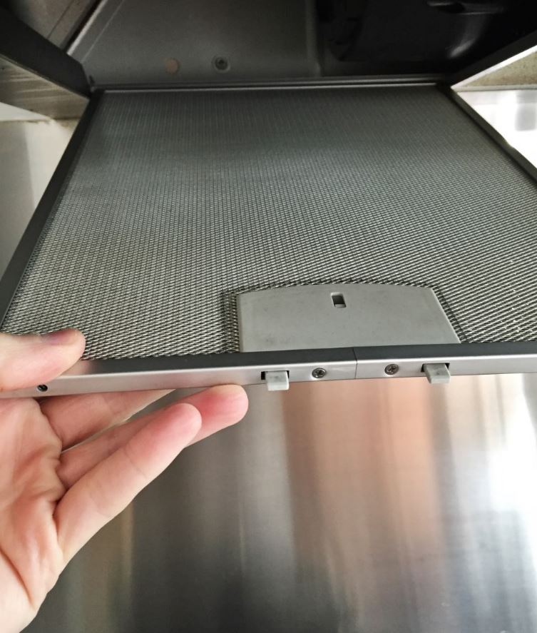 Αφαιρούμε το μεταλλικό φίλτρο από τον απορροφητήρα.