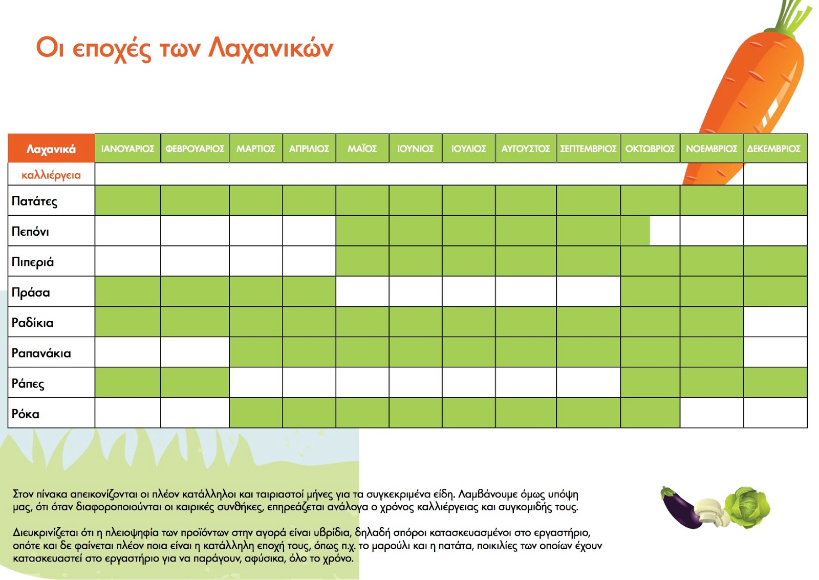 Χρηστικός πίνακας εποχικότητας φρούτων και λαχανικών.