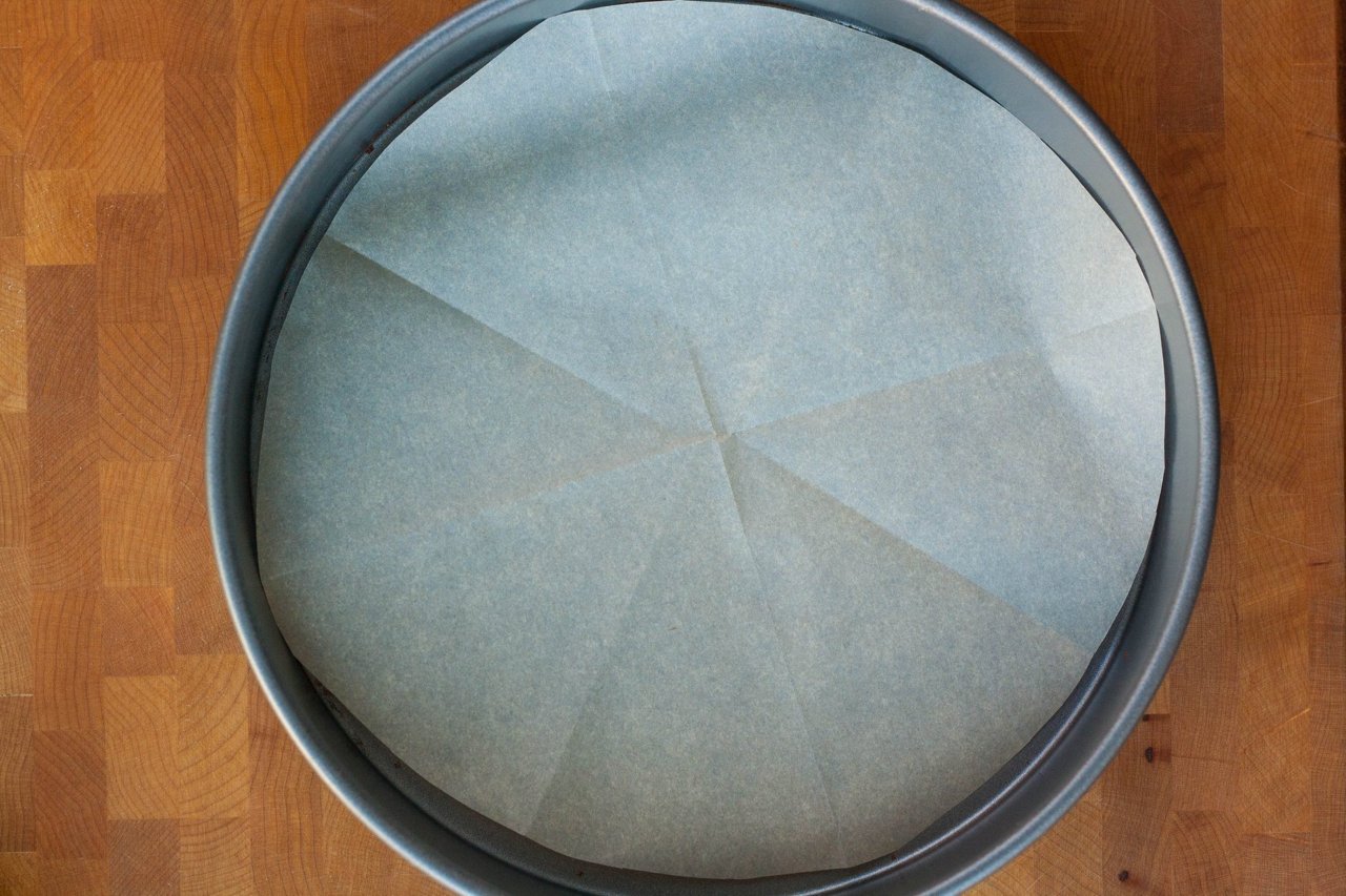 Αγαπάτε το ψήσιμο και σχεδόν ψήνετε κάθε εβδομάδα το αγαπημένο σας κέικ; Πόσες φορές δεν σας έχει τύχει να προσπαθήσετε να χωρέσετε ένα κομμάτι αντικολλητικό χαρτί σε μια στρογγυλή βάση καταλήγοντας να έχετε σπαταλήσει πολύ χαρτί και να προεξέχουν κομμάτια από έξω. Ή απλά να βάλετε το ταψί πάνω στο χαρτί, να μαρκάρετε ένα κύκλο και να κόψετε. Λοιπόν, αυτό θα οδηγήσει σε ένα κομμάτι πάρα πολύ μεγάλο για το εσωτερικό του ταψιού. Ο πιο αποτελεσματικός τρόπος είναι η παρακάτω μέθοδος απαιτεί μόνο μερικά απλά διπλώματα και ένα κόψιμο με το ψαλίδι.