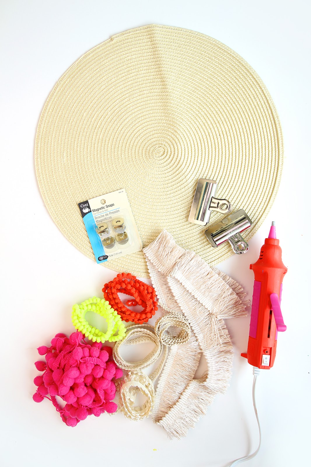 Ντύστε το τσαντάκι με κρόσσια και τρέσες χρησιμοποιώντας το πιστόλι κόλλας, φροντίζοντας να καλύψετε το κούμπωμα.