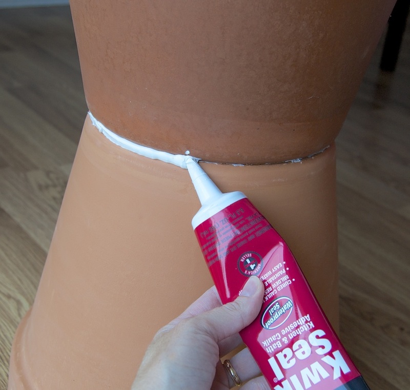 3. Με τη σιλικόνη καλύψτε την ένωση των 2 γλαστρών για καλύτερη εμφάνιση. Απλώστε απαλά με το δάκτυλο σας.