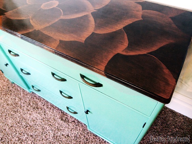 Χρησιμοποιώντας ενα παλιό έπιπλο και έμπνευση απο ένα λουλούδι, σχεδιάστε μερικά πέταλα ελαφρά με ένα μολύβι στο πάνω μέρος της επιφάνειας του επίπλου.