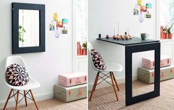 Αν θέλετε ένα γραφείο, αλλά δεν έχετε το χώρο, φτιάξτε ένα αναδιπλωμένο με έναν καθρέφτη στο πλάι.
