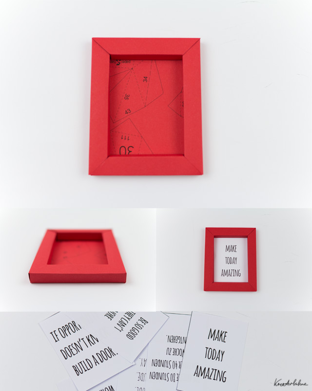 6-7: Περαστε τις διπλωμένες μακρύτερες πλευρές μέσα στα ανοίγματα των κοντυτέρων πλευρών και η κορνίζα είναι έτοιμη.