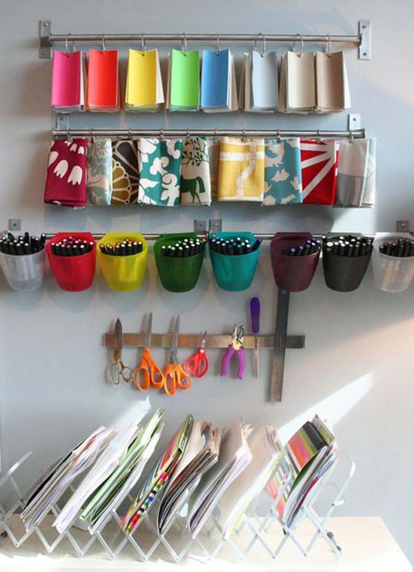 Οργανώστε τα υλικά χειροτεχνίας με μεταλλικές ράβδους και μαγνήτες.