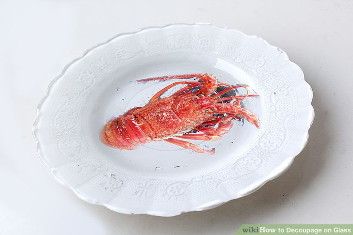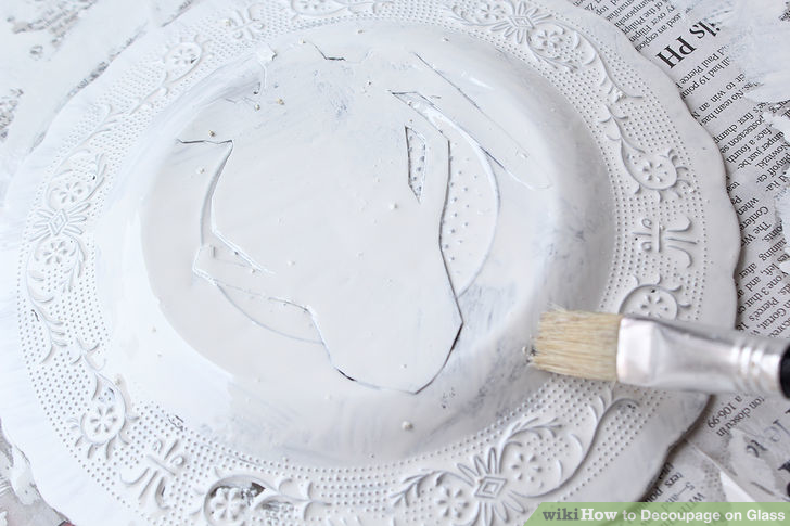 Εφαρμόστε decoupage κόλλα στην όψη της εικόνας και κολλήστε τη στο πιάτο με την όψη προς τα κάτω. Πιέστε απαλά για να αφαιρέσετε τυχόν φυσαλίδες αέρα κάτω από την εικόνα. Αφήστε να στεγνώσει για 20 λεπτά.