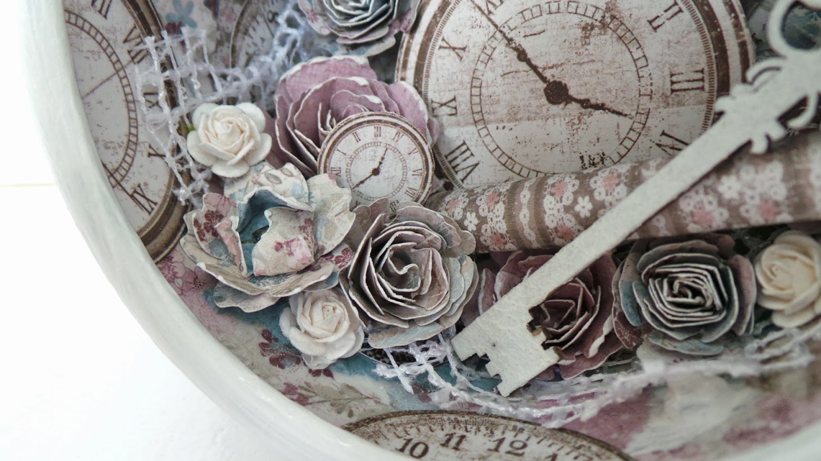 Προσθέσετε τα λουλούδια και μερικά χάρτινα ρολόγια στο εσωτερικό.