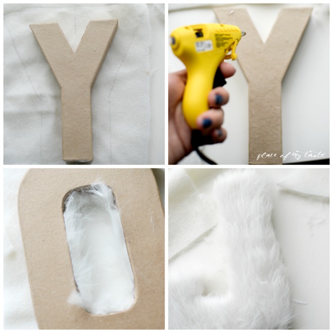 Με το πιστόλι κολλήστε τη γούνα πάνω στα γράμματα.
