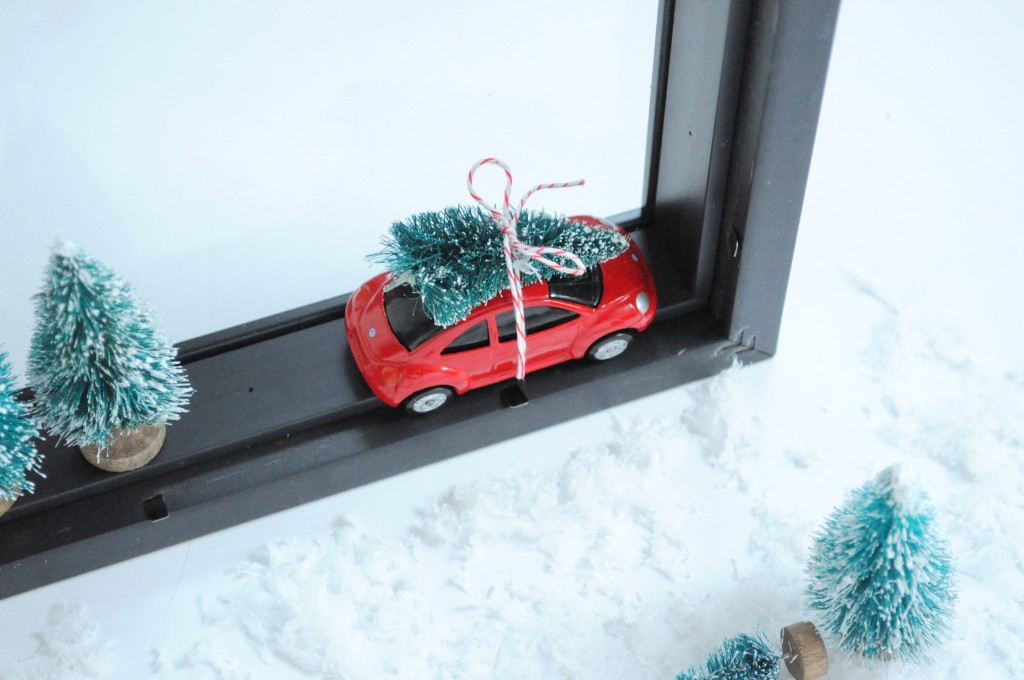 Μίνι έλατα, αυτοκίνητα, ψεύτικο χιόνι, σπάγκος