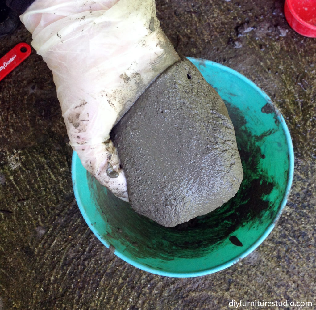 Αρχικά, χρησιμοποιήστε ένα πολύ παχύρευστο μείγμα τσιμέντου. Η διαδικασία είναι γενικά η ίδια σε όλες τις παραλλαγές. Φορέστε τη μάσκα και τα προστατευτικά γάντια για να εργαστείτε με το τσιμέντο.
