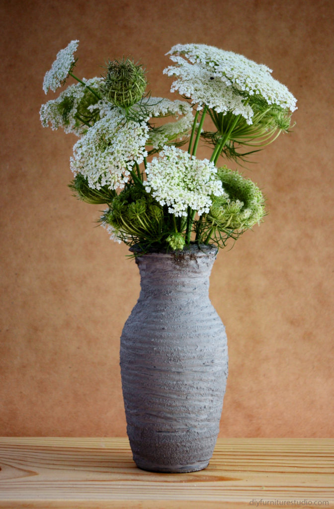 Για αυτή την παραλλαγή, φτιάξτε πιο λεπτόρρευστο το μείγμα με την προσθήκη περισσότερου νερού στο τσιμέντο. Επειδή το βάζο έχει γραμμές για καλύτερο αποτέλεσμα χρειάζεται να είναι ορατές κάτω από το τσιμέντο.