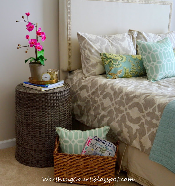 Ένα ανάποδο ψάθινο καλάθι γίνεται το τέλειο κομοδίνο σε ένα μικρό χώρο.