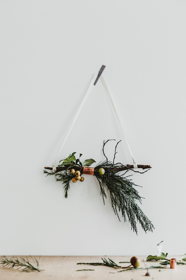 Τρίγωνο στεφάνι με κλαδιά και χάλκινα σωληνάκια
