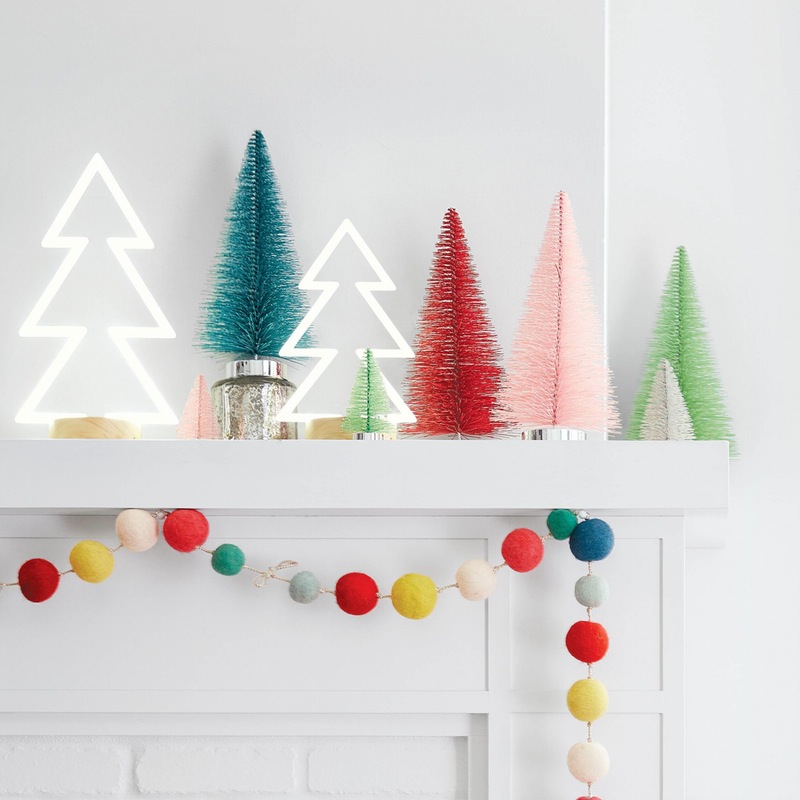 1. Δώστε λίγη λάμψη στο τζάκι με χριστουγεννιάτικα δέντρα από φωτάκια νέον.