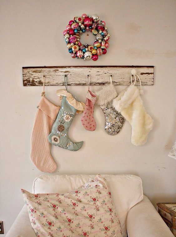 Κρεμάστε κάλτσες στο τζάκι, στο δέντρο, στις σκάλες και οπουδήποτε αλλού. Μπορείτε να ράψετε μερικές από δαντέλα και λινάτσα και να τις διακοσμήσετε με floral μοτίβα, κουδουνάκια, ψεύτικα άνθη και πέρλες.