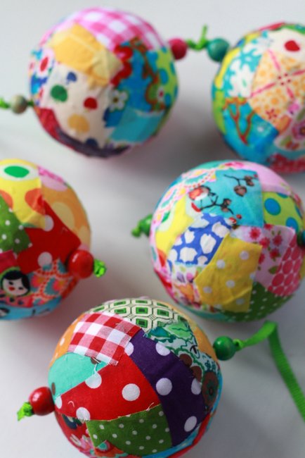 Χριστουγεννιάτικες μπάλες από περισσέματα υφασμάτων