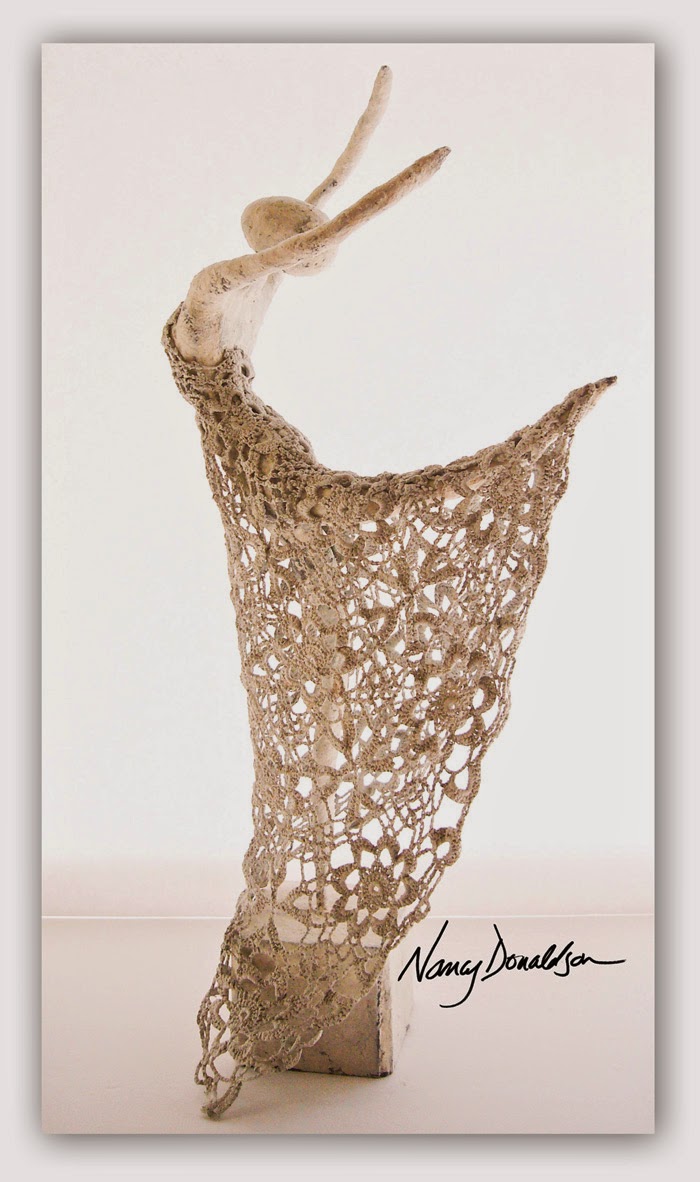 Φτιάξτε σώμα απο σύρμα και καλύψτε το με αλουμινόχαρτο. Χρησιμοποιήστε για κεφάλι μία μπάλα απο φελιζόλ. Μπορείτε να καλύψετε το σώμα με πηλό ή τον χαρτοπολτό Stone Art o οποίος αναμεμειγμένος με το σκληρυντικό δημιουργεί πηλό που στεγνώνει μόνος του. Το ύφασμα του υφάσματος παρακάτω δεν είναι κάτι άλλο απο ένα απλό σεμέν και έχει υποστεί σκλήρυνση.
