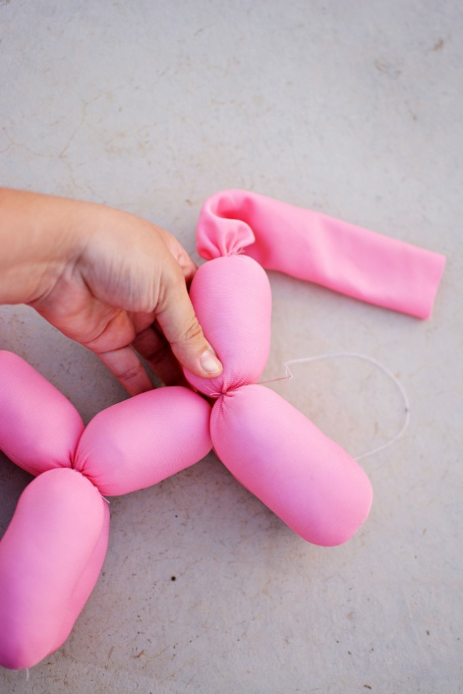 Πιάστε τα δύο τελευταία και ράψτε τα σφιχτά για να σχηματίσετε τα μπροστινά πόδια.