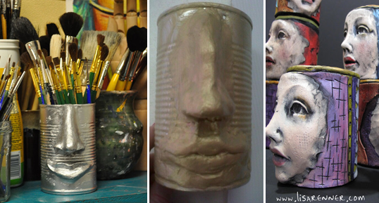 Για τα προσωπάκια στην πιο απλή μορφή τους θα χρειαστείτε πηλό που στεγνώνει μόνος του, άδειο κονσερβοκούτι και ένα σπρέι κατα προτίμηση ασημένιο.