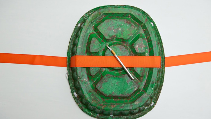 3. Προσθέστε ιμάντες έτσι ώστε το καβούκι να φοριέται σαν σακίδιο. Ανοίξτε τρύπες στις άκρες και δέστε κομμάτια λάστιχο.
