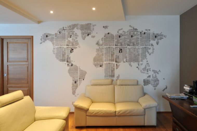 3. Διακοσμήστε ένα τοίχο με παγκόσμιο χάρτη από παλιές εφημερίδες