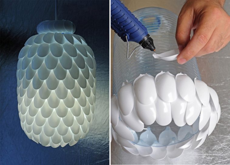 9. Φτιάξτε ένα αμπαζούρ από πλαστικά κουτάλια και ένα μπουκάλι νερού.