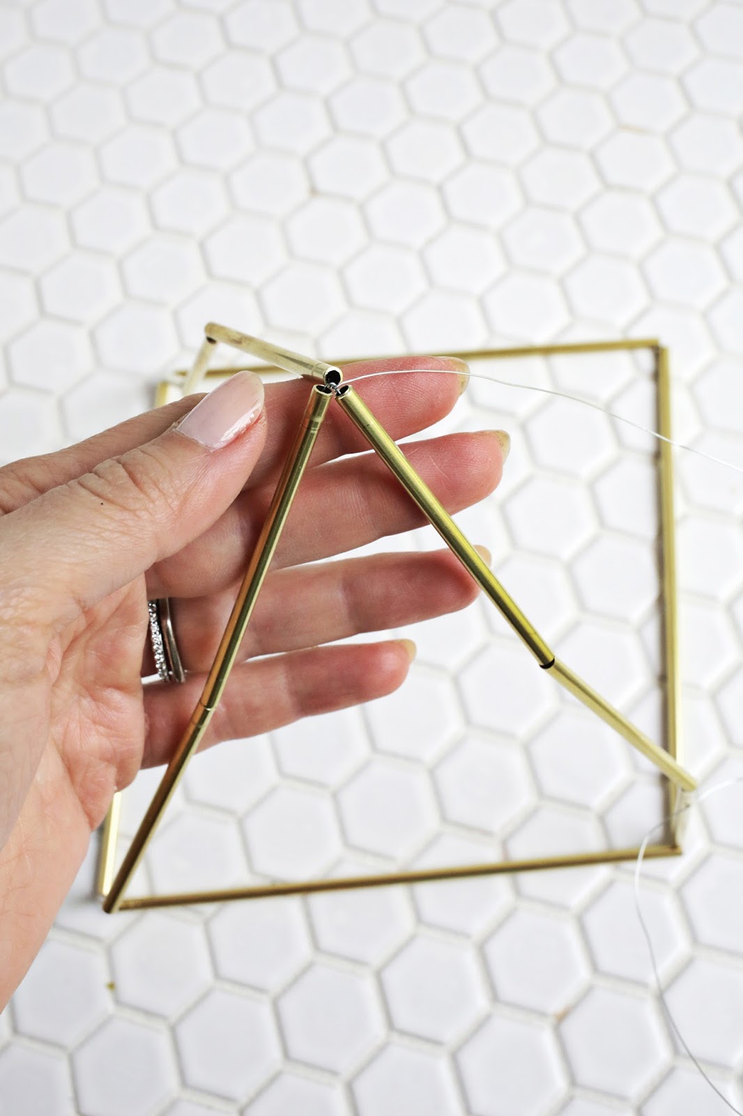 Για να φτιάξετε το άλλο μισό, επαναλάβετε τη διαδικασία για τις άλλες δύο γωνίες με τα υπόλοιπα 6 σωληνάκια (6,5 εκατοστών), αλλά περάστε μόνο τα 3, τυλίξτε το σύρμα γύρω από τη μέση της άλλης πλευράς και στη συνέχεια προσθέστε τα άλλα 3 για να δημιουργήσετε την κορυφή της πυραμίδας.