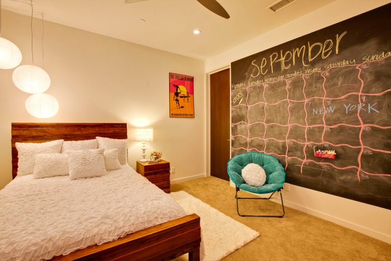 Το υπνοδωμάτιο, ιδιαίτερα το παιδικό είναι άλλο ένα ιδανικό μέρος για ένα τοίχο μαυροπίνακα. Τα παιδιά μπορεί να είναι τόσο δημιουργικά και να εξασκήσουν τις δεξιότητες γραφής και ζωγραφικής πάνω του. Μπορείτε ακόμη να δημιουργήσετε ένα ημερολόγιο και να προγραμματίσετε όλες τις εκδηλώσεις σας εκεί.