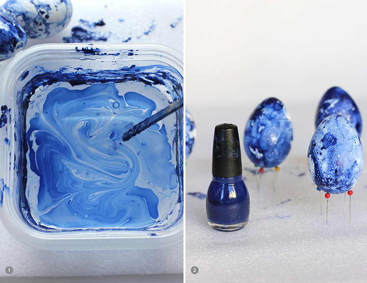 3) Βυθίστε το αυγό στο νερό και στριφογυρίστε το. Φορέστε λαστιχένια γάντια για να μη λερωθείτε. Εναλλακτικά χρησιμοποιήστε μικρές λαβίδες για να τα βγάλετε.