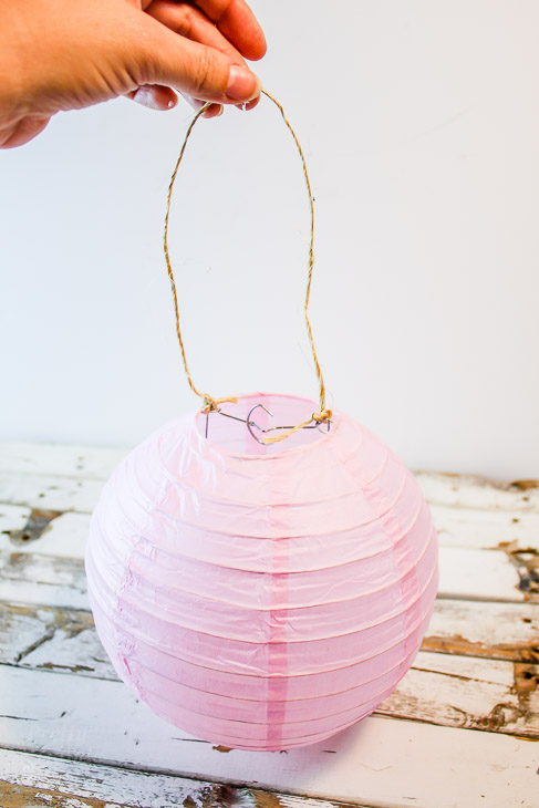 Μετρήστε το μήκος που θέλετε να κρέμεται το κυπελάκι και κόψτε το σπάγκο. Δέστε το άλλο άκρο στο φανάρι. Διπλώστε το σπάγκο στη μέση για να κεντράρετε.