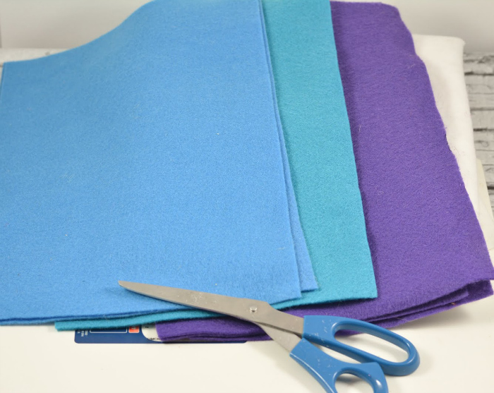 2) Κόψτε τετράγωνα με περίπου το ίδιο μέγεθος από τις χρωματιστές τσόχες.