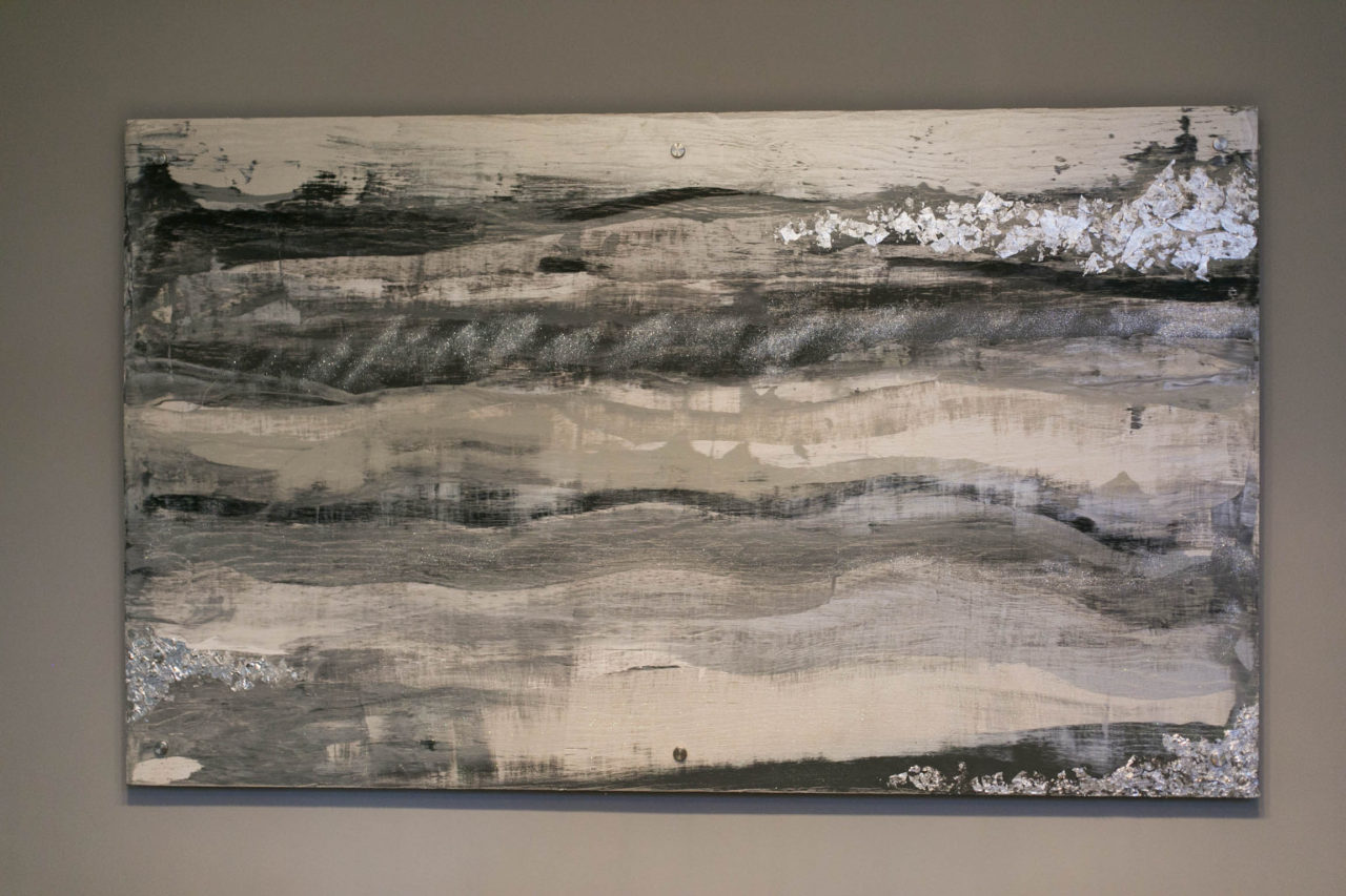 Για να ζωγραφίσετε, ρίξτε λίγη ποσότητα διαφορετικών αποχρώσεων του γκρι σε μια κάθετη γραμμή στη μία άκρη του κόντρα πλακέ. Χρησιμοποιήστε τη σπάτουλα για τις μεγάλες επιφάνειες για να απλώσετε το χρώμα οριζόντια κατά μήκος του κόντρα πλακέ. Δεν χρειάζεται να κάνετε ευθείες γραμμές!