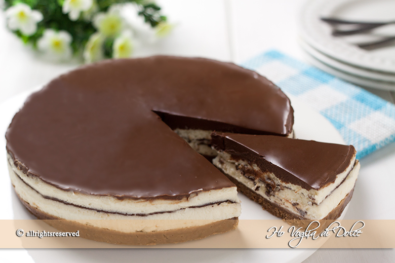 Ο δίσκος σοκολάτα πρέπει να τοποθετεί στη μέση της γέμισης. Λιώστε τη σοκολάτα σε ένα μπεν μαρι. Βάλτε τη λιωμένη σοκολάτα σε ένα αντικολλητικό χαρτί. Φτιάξτε με μια σπάτουλα σιλικόνης ένα λεπτό δίσκο σοκολάτας της ίδιας διαμέτρου με τη βάση της φόρμας. Βάλτε στο ψυγείο για τουλάχιστον 30 λεπτά. Αν είστε βιαστικοί 10 λεπτά στην κατάψυξη.