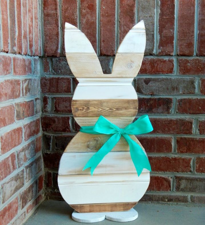 Τα παραδοσιακά σύμβολα του Πάσχα είναι τα αυγά φυσικά και τα λαγουδάκια τα οποία μπορείτε να φτιάξετε με ξύλο και να διακοσμήσετε το σπίτι ή την αυλή σας. Χρησιμοποιήστε ξύλο ή παλέτες για να τα φτιάξετε και είτε μπορείτε να αφήσετε τη φυσική εμφάνιση του ξύλου είτε να τα βάψετε για να φαίνονται ακόμη πιο εντυπωσιακό. Επίσης, μπορείτε να χρησιμοποιήσετε κορμούς δέντρων ή φέτες ξύλου. Δεν υπάρχουν ορισμένοι κανόνες για το πώς να τα φτιάξετε, απλά να είστε δημιουργικοί. Ακόμη, μπορείτε να επιλέξετε ένα ξύλινο διακοσμητικό για το κέντρο του πασχαλινού τραπεζιού. Πάρτε ένα ξύλινο κουτί και γεμίστε το με γρασίδι, διακοσμημένα πασχαλινά αυγά και μερικά λουλούδια. Ή μετατρέψτε μικρούς κορμούς σε όμορφα βάζα. Έτσι, θα εξοικονομήσετε χρήματα και θα έχετε τα πιο μοναδικά διακοσμητικά.